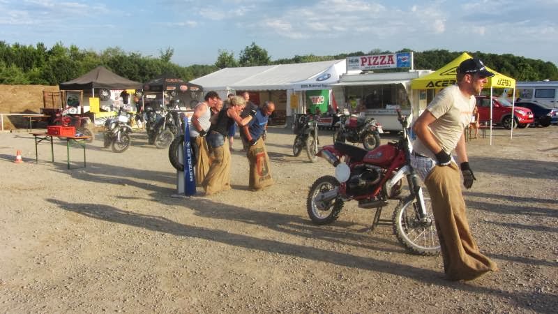 Samstag Abend wurde ein Zehnkampf durchgeführt, bei dem die Enduristen Aufgaben gestellt bekamen wie das Erraten der Anzahl von Schrauben in einem Glas, Sackhüpfen mussten oder Kolbenweitwurf. Teilnehmer für den Zehnkampf zu finden, gestaltete sich als sehr schwierig. Doch setzte diese Aktion dem Ganzen noch etwas drauf. Die eine Kämpferin und die neun Kämpfer legten sich ins Zeug. Die Anstrengung lohnte sich: zu gewinnen gab es viel. Dem ersten Siegen winkte ein 500,00 Euro Gutschein aus dem Hause SWT-SPORTS. Weitere Siegesprämien waren Produkte, die von Butzner-Reifenhandel, Hartge oder Mefo vertrieben wurden.