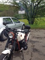 Umgebaut, wurde auf original Teile, nur ist die Gabel jetzt eine von der R100R, der Tank von einer Monolever und die Verkleidung geht bald schon wieder auf die Reise.
